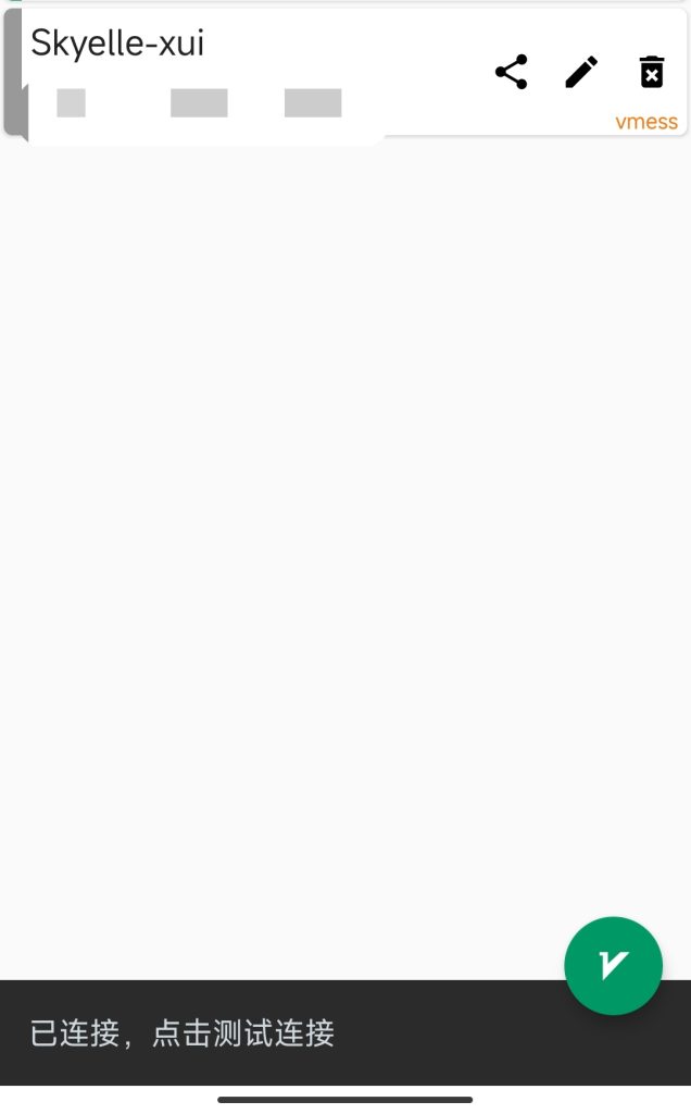 添加好后点击右下角按钮连接,点击黑色条幅测试是否能够联通。(延迟跟节点速度没有直接关系)