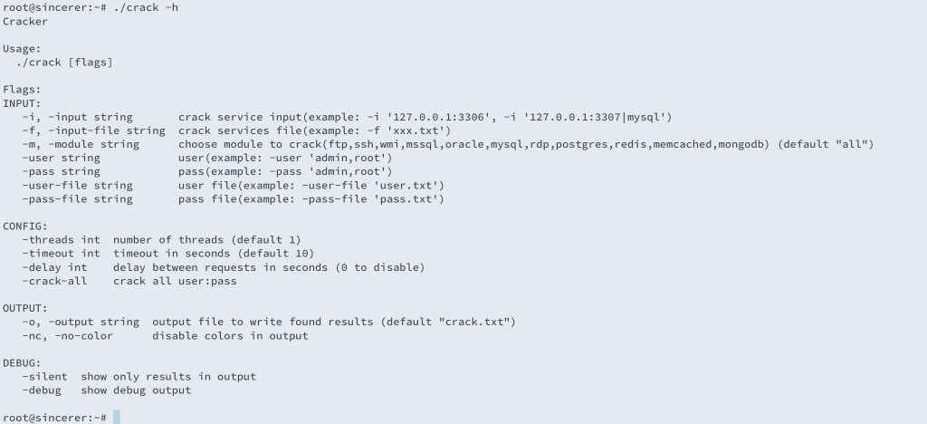 Crack是一个类似Hydra的功能强大的,高效的弱口令爆破程序,使用Golang编写,安装方便,跨平台支持(甚至可以使用Termux在未root的安卓上运行)